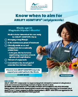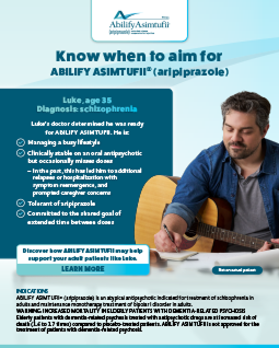 ABILIFY ASIMTUFII® (aripiprazole) is an atypical antipsychotic indicated for treatment of schizophrenia in adults and maintenance monotherapy treatment of bipolar I disorder in adults.